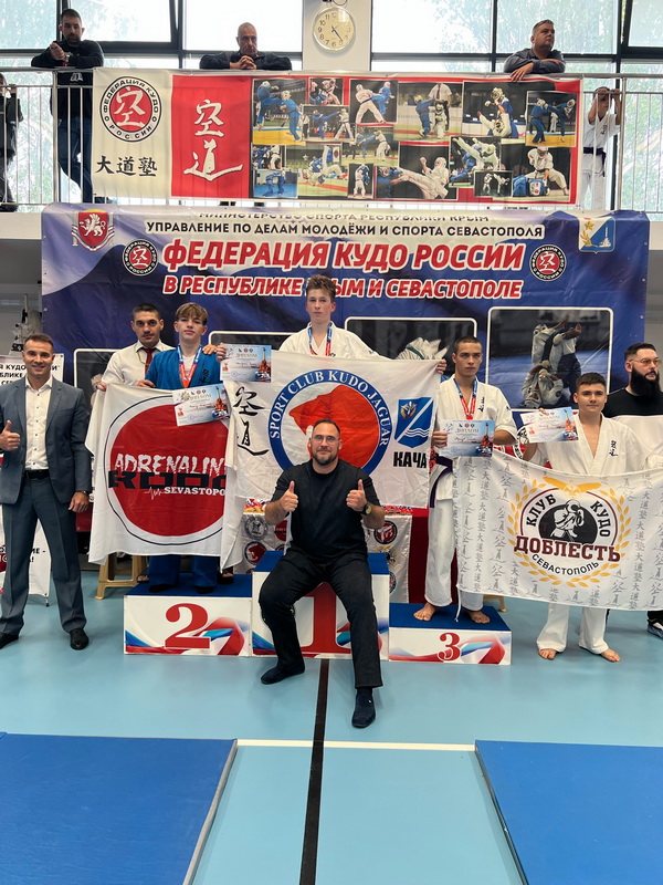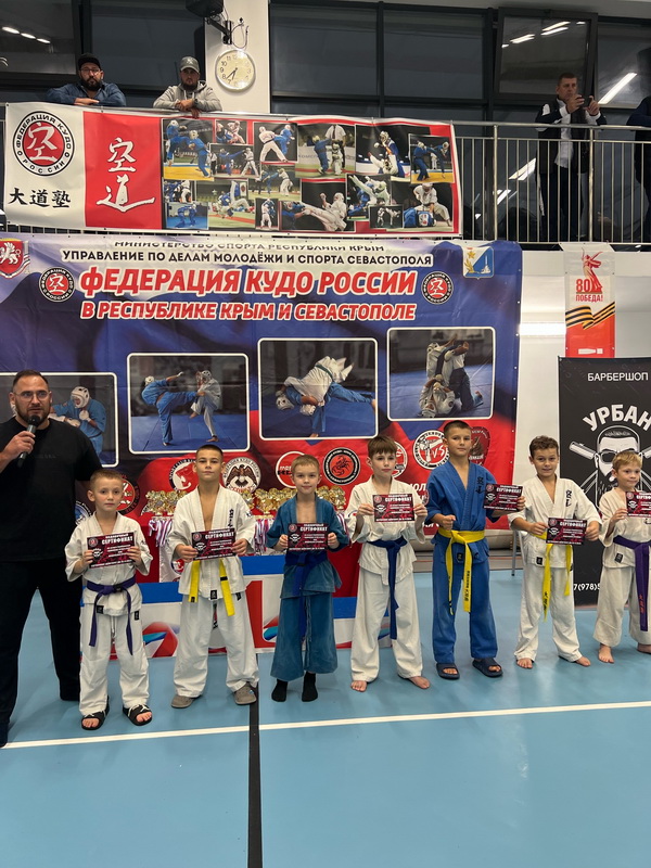 Первенство , Чемпионат, фестиваль по КУДО 11.10.2025г11 октября 2025 года в Севастополе на территории Спорткомплекса ГБУ города Севастополя «СОК имени 200-летия Севастополя», ул. Павла Корчагина, д. 1 - А, прошли Первенство города-Героя Севастополя – 2025 по КУДО среди юношей и девушек, юниоров и юниорок, Чемпионат среди взрослых. В соревнованиях приняли участие более 80 спортсменов.В рамках соревнований прошли открытые детские соревновательные тренировки в формате фестиваля КУДО. В этом фестивале выступили порядка сотни юных спортсменов, которые были награждены медалями, кубками и ценными призами. Соревнования открыли «Севастопольская федерация спортивной аэробики», руководитель Могутова Вера Валентиновна. Благодарим учредителя компании "Электронные торги России" Дворникова Максима Сергеевича за вклад в развитие КУДО. Партнер федерации барбершоп «УРБАН» вручил 12 бесплатных сертификатов лучшим спортсменам на классные стрижки. На торжественном открытии мероприятия руководитель Крымского КУДО Илья Городецкий подарил партнёрам федерации Дворникову Максиму Сергеевичу, учредителю компании "Электронные торги России" и Яцун Игорю Юрьевичу, директору барбершопа "УРБАН", книгу КУДО " ПУТЬ ОТКРЫТОГО СЕРДЦА". По итогу Турнира : 1-ое место команда СК"ЯГУАР", 2-ое место команда СК"ДОБЛЕСТЬ", 3-е место команда СК"АДРЕНАЛИН", 4-е место команда СК"БОГАТЫРЬ" Мероприятие прошло на высоком уровне, в дружеской обстановке.